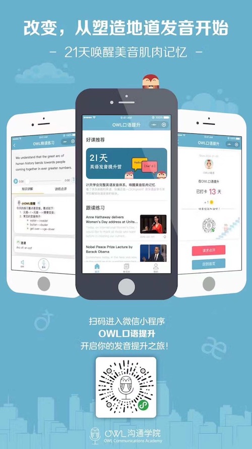 search in Wechat Store with name "英语口语发音"This app helps English teachers distribute learning materials (text, audio, image), collect learners’ homework, provide individualized feedback, and other pedagogical communications based on WeChat